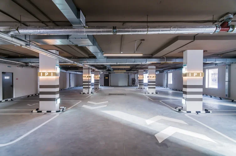 Закрытый двор с системой видеонаблюдения и отделенная от двора парковка. В жилом доме 30 парковочных мест в комфортном надземном паркинге.