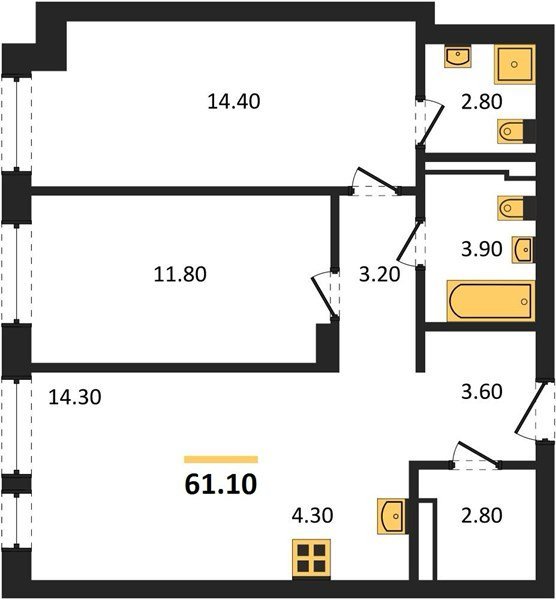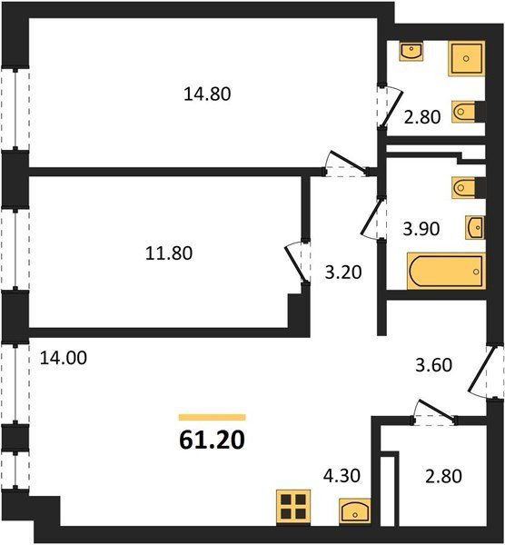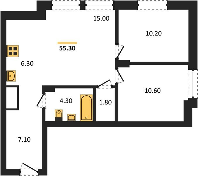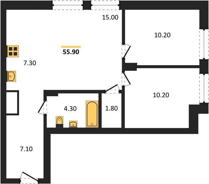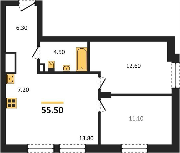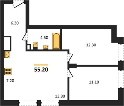 Площадь от 55.2 м2