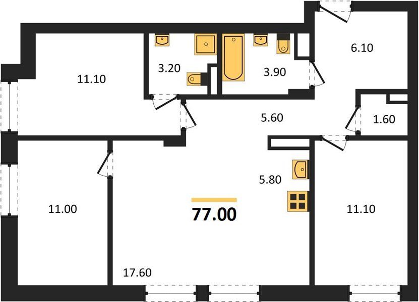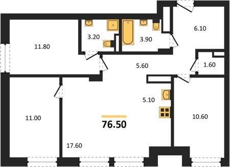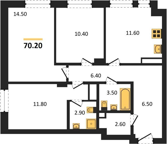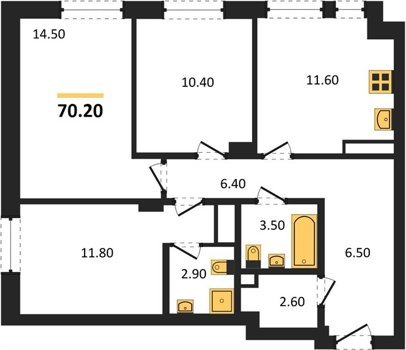 Площадь от 70.2 м2